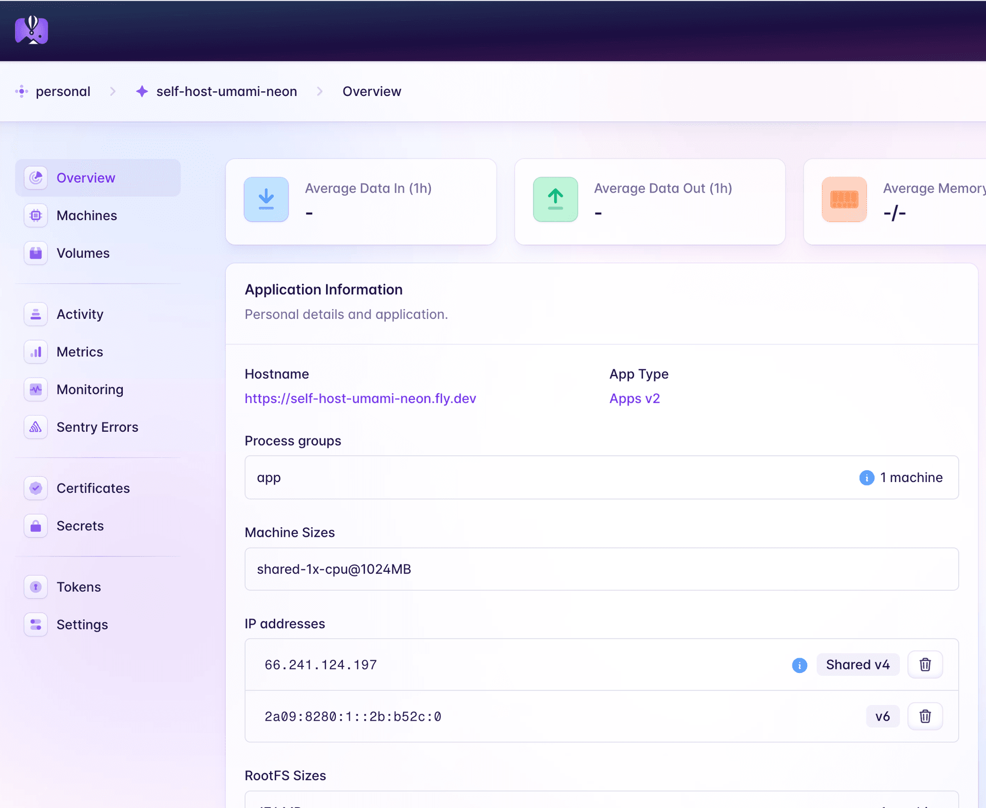 Admin URL: https://fly.io/apps/self-host-umami-neon